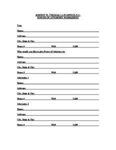 POWER OF ATTORNEY WORKSHEET